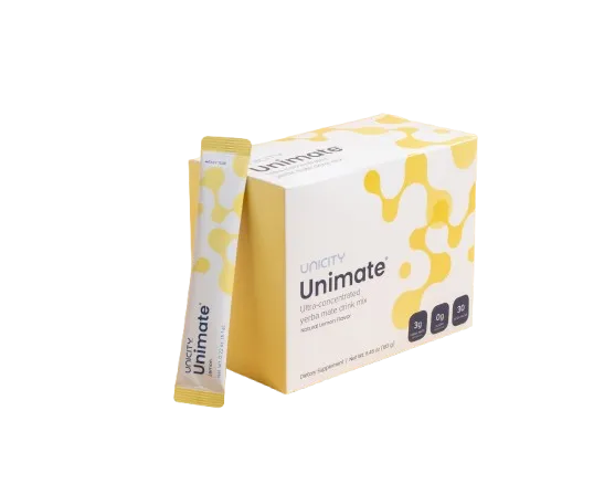 Te puedes levantar con Unimate y empiezas tu dia con el pie derecho. Esta bebida de yerba mate concentrada contiene una mezcla única de compuestos vegetales conocidos por: